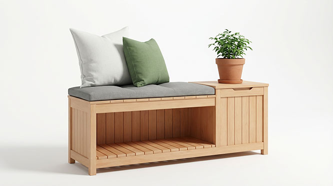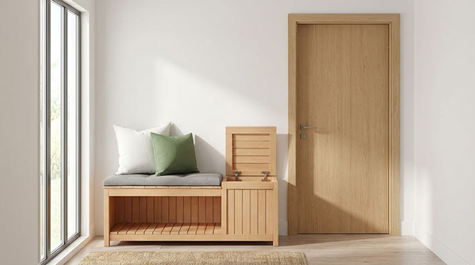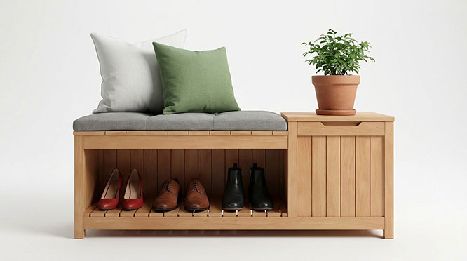این نیمکت ورودی از چوب راش طبیعی ساخته شده و ترکیبی بینقص از زیبایی و کارایی را ارائه میدهد. اتصالات آن کاملاً علمی و اصولی انجام شده و نهایت کیفیت و دوام را تضمین میکنند. نشیمن نرم آن، پوشیدن و درآوردن کفش را ساده و راحت میکند. فضای زیرین برای نظمدهی مرتب کفشها طراحی شده است. محفظه کناری دربدار با بازشوی رو به بالا فضای مخفی و کاربردی در اختیار شما میگذارد. ایدهآل برای نگهداری کیف، لوازم روزمره و وسایل شخصی. طراحی مینیمال و مدرن، هماهنگ با دکوراسیونهای شیک امروزی. انتخابی ماندگار برای خانههایی که نظم، کیفیت و زیبایی را همزمان میخواهند.
