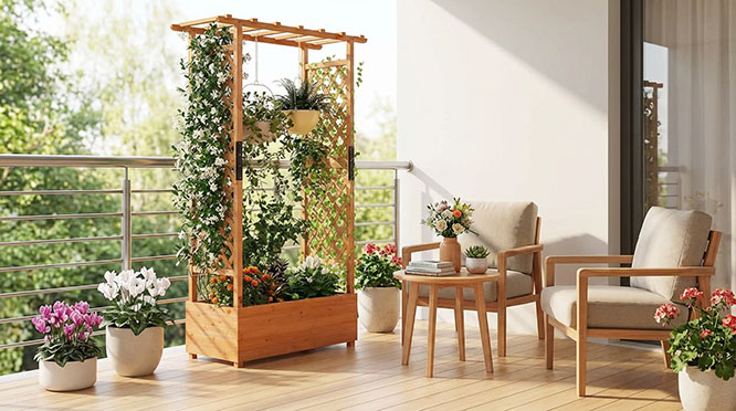 عاشق گل و گیاه هستی ولی فضای کافی نداری! این محصول شگفت انگیز فضای سرد و بی روح شما رو به باغی سبز و زنده تبدیل می کند. حتی می توان آن را در بالکن آپارتمان قرار داد. گیاهان پیچکی یا رونده به راحتی از این سازه چوبی بالا میروند و فضای کافی برای رشد را در اختیار خواهند داشت. این محصول به دلیل ارسال آسان به صورت قطعات جداگانه ارسال میشود ولی نصب آن ساده است و شما میتوانید خودتان به راحتی آن را سرهم کنید.