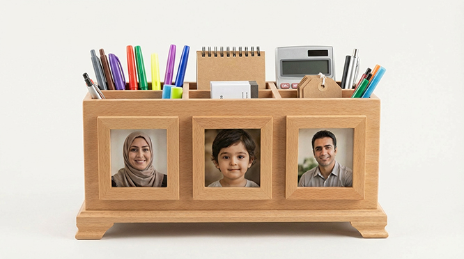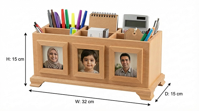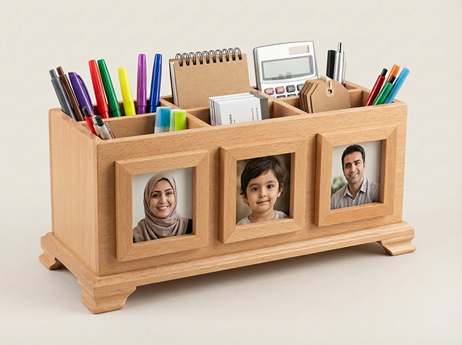 توضیحات: این سازماندهنده رومیزی چوبی با طراحی شیک و کاربردی، میز شما را مرتب و زیبا نگه میدارد. بخشهای مجزا امکان نظم دادن به قلمها، یادداشتها و وسایل کوچک را فراهم میکنند. نگهدارنده عکس به شما اجازه میدهد تصویر یا یادگاری دلخواهتان را نمایش دهید و جلوه شخصی به میز بدهید. ساخت چوبی مقاوم و طبیعی، طول عمر بالا و حس آرامش به محیط میبخشد. این محصول، ترکیبی از کاربرد و زیبایی برای خانه یا دفتر شماست.