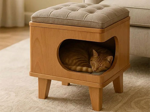 کلبه و صندلی چوبی ۲ در ۱ برای گربه | مبلمان پت 648