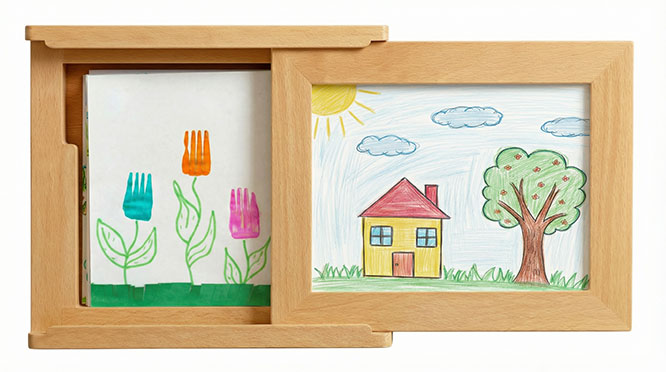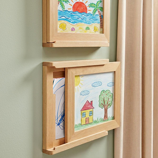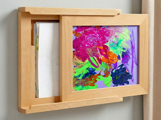 - این قاب چوبی به کودک نشان میدهد که نقاشیهایش ارزشمند هستند و دیده میشوند.